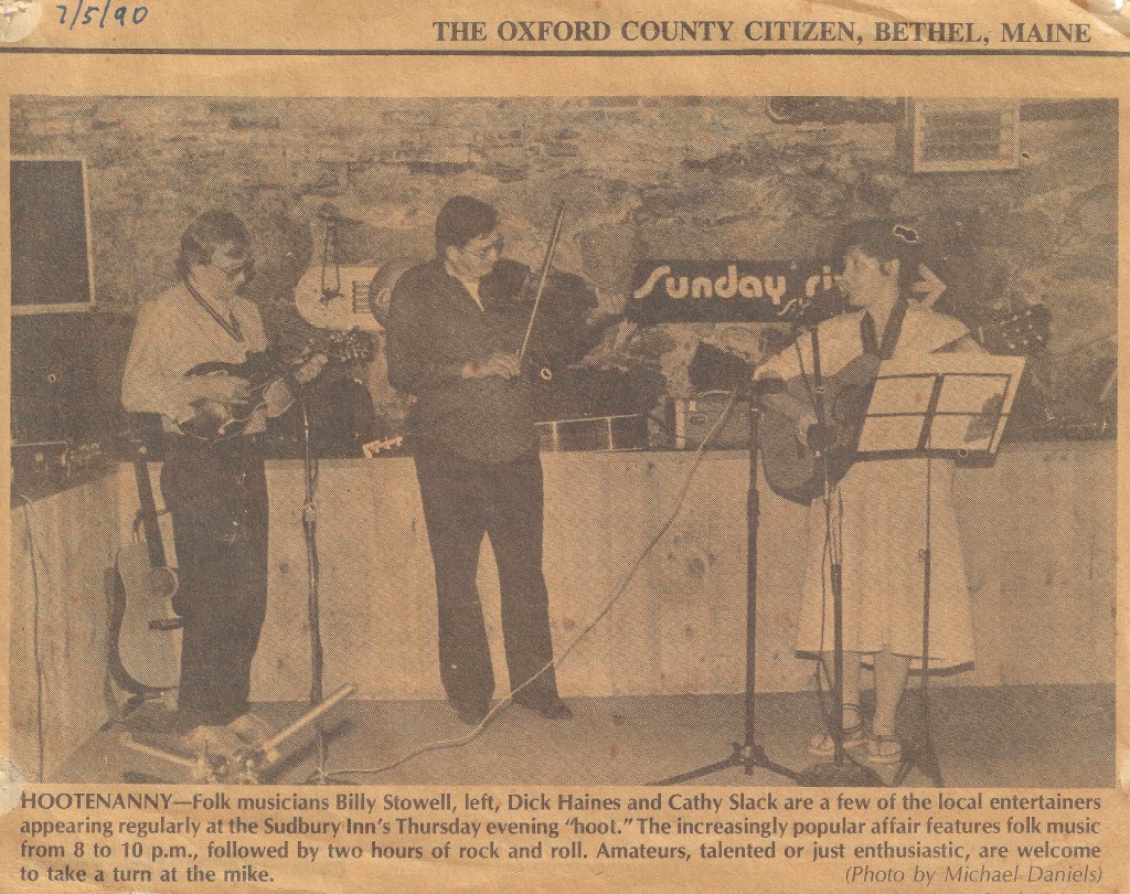 “Hootenanny – Folk musicians Billy Stowell, left, Dick Haines and Cathy Slack are a few of the local entertainers appearing regularly at the Sudbury Inn’s Thursday evening “hoot.” The increasingly popular affair features folk music from 8 to 10 p.m., followed by two hours of rock and roll. Amateurs, talented or just enthusiastic, are welcome to take a turn at the mike.“
