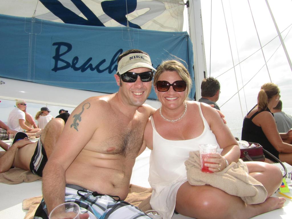 Jennifer and Lee on the Island Routes Catamaran at Sandals Negril:
