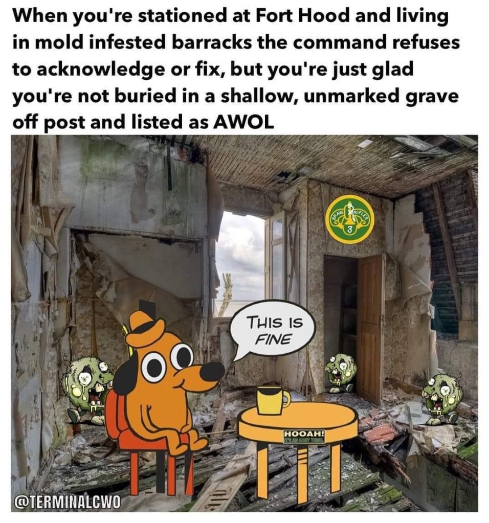 The Army is disgusting. I am very disappointed with the Air Force as well but I wouldn’t let my enemy join the Army after what I learned while researching all branches of service. The Army is definitely the most problematic with Marines being a close second. The Air Force and Navy are both f*cked as well but they get minimized because who gives a f*ck about a bunch of p*ssies. Meanwhile, the USAF and Navy are getting away with murder too because everyone took their eye off the ball. And the entire military is one public affairs officer away from making it all sound like the “authorities” have everything under control and then it’s a waiting game… just wait until the media gets tired of the story. And they do, they always do. As a matter of a fact, they rarely follow up on the cause of death of a service member.